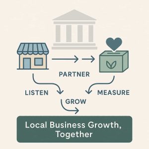 When city governments and nonprofits work together with clear goals and simple processes, they provide steady, reliable support for local businesses. That support helps owners grow, hire, and invest in their communities. The blueprint above provides both sides with a starting point, with clear roles, shared information, and small programs that solve real problems. From there, a stronger local economy can grow one business at a time.